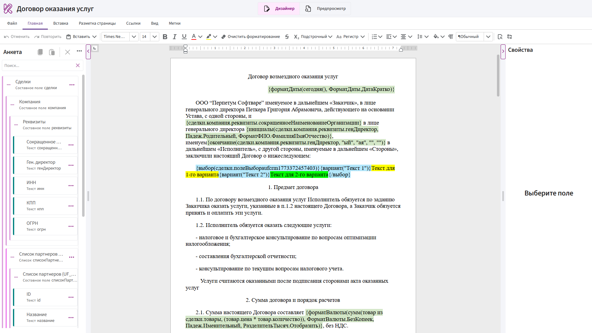 - Конструкторы документов - сервисы, которые настраиваются под требования и автоматически заполняют информацию, избавляя сотрудников от ручного ввода.