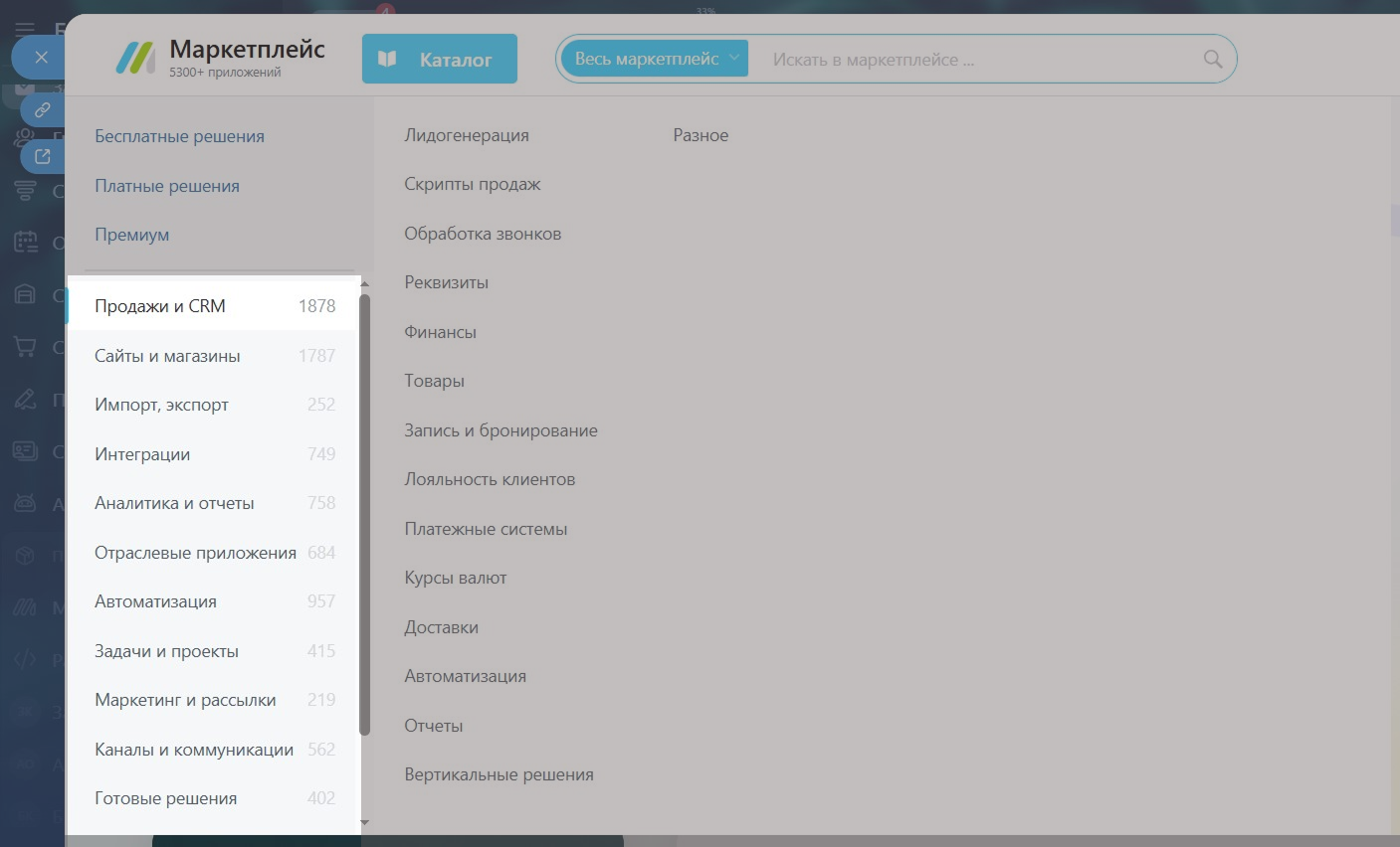1. CRM - центральный модуль Битрикс24. От того, насколько грамотно он настроен, напрямую зависит автоматизация продаж и смежных процессов. В соответствующей категории Маркетплейса собраны приложения, которые усиливают работу с клиентами и сделками.