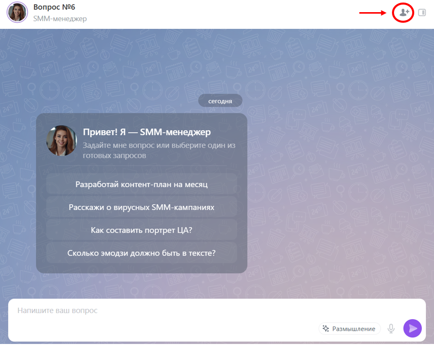 Добавьте коллег в диалог с ИИ, чтобы совместно обсуждать предложения.