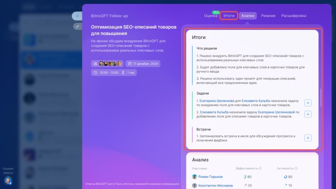 5. BitrixGPT Follow-up: ваш секретарь на совещаниях