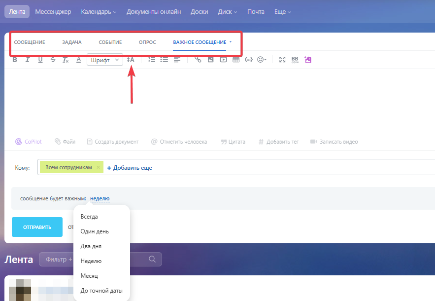 Используйте функционал Ленты (например, сообщения или важные сообщения с дополнительным уведомлением о прочтении) для сообщений о тех или иных события с выбором получателей.
